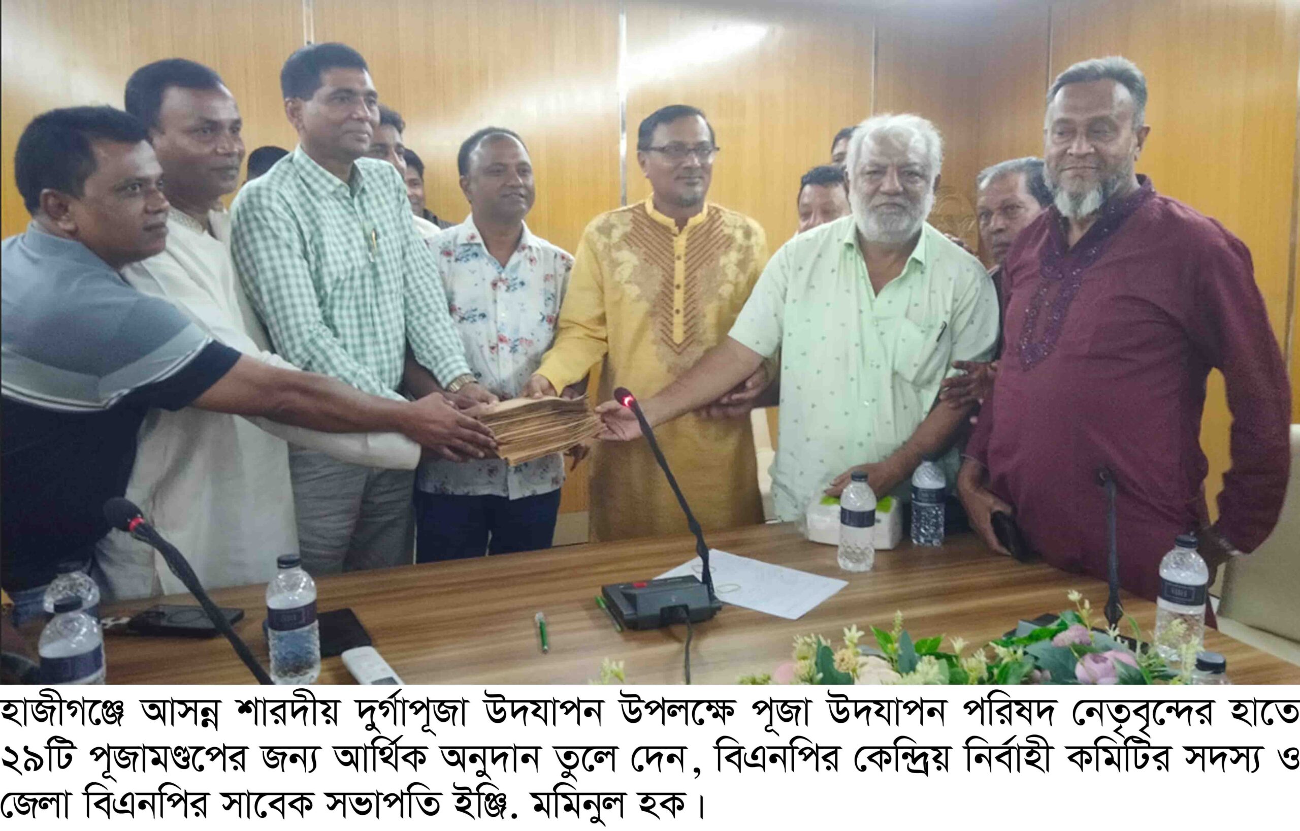এর আগে বক্তব্য রাখেন, ইঞ্জি. মমিনুল হক। তিনি তাঁর বক্তব্যে বলেন, সাম্প্রদায়িক সম্প্রীতি বজায় রেখে সকল শ্রেণি-পেশার মানুষের অংশগ্রহণ ও সার্বিক সহযোগিতায় আসন্ন শারদীয় দুর্গাপূজা সুষ্ঠু, শান্তিপূর্ণ ও উৎসবমুখর পরিবেশে অনুষ্ঠিত হবে। এক্ষেত্রে বিএনপির নেতাকর্মীদের সার্বিক সহযোগিতা থাকবে।
