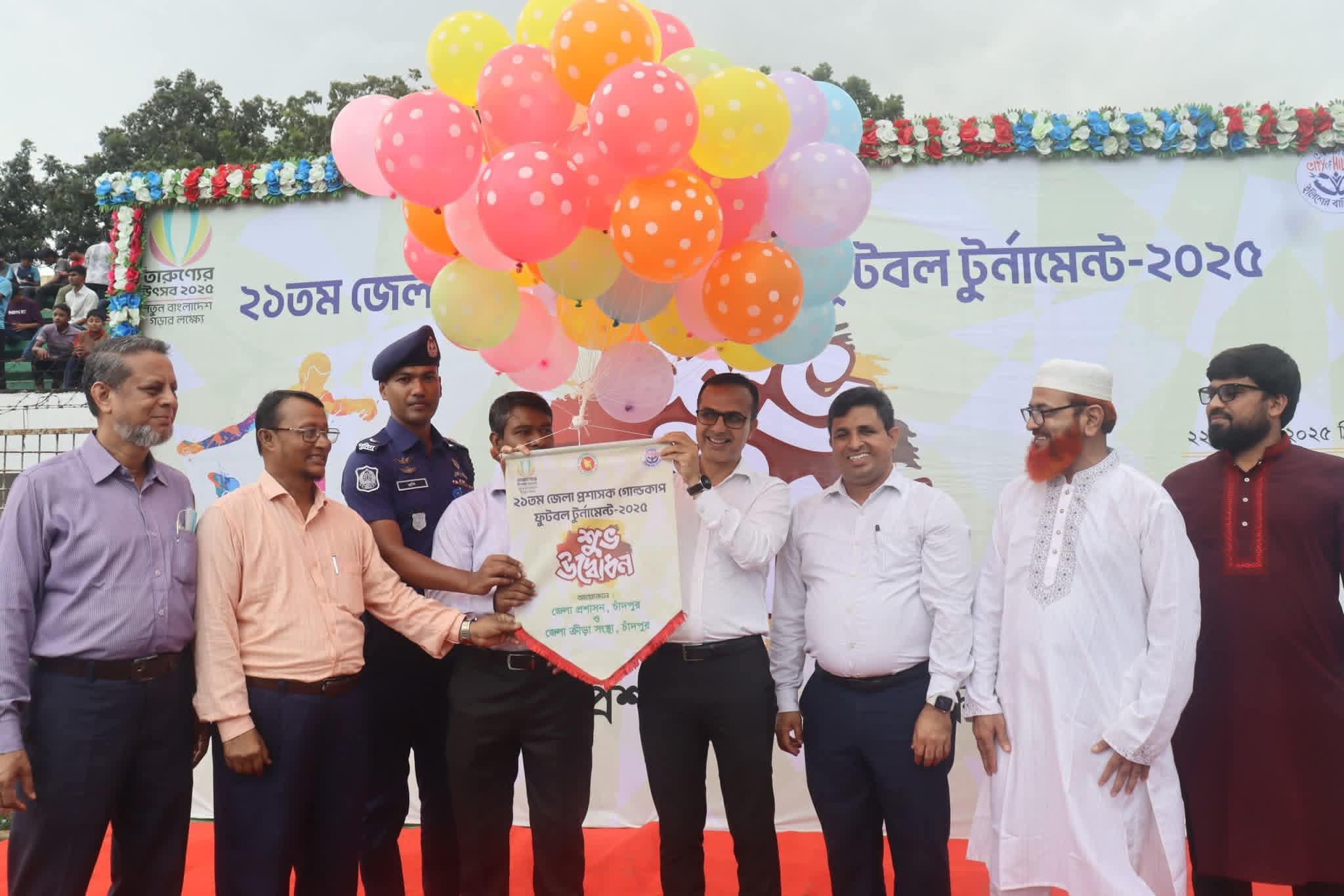 চাঁদপুর জেলা স্টেডিয়ামে বর্ণিল আয়োজনের মাধ্যমে মাঠে গড়ালো ২১ তম জেলা প্রশাসক গোল্ডকাপ ফুটবল টুর্নামেন্ট। সোমবার বেলুন উড়িয়ে টুর্নামেন্টের উদ্বোধন ঘোষণা করেন চাঁদপুর জেলা প্রশাসক মোহাম্মদ মোহসীন উদ্দিন।