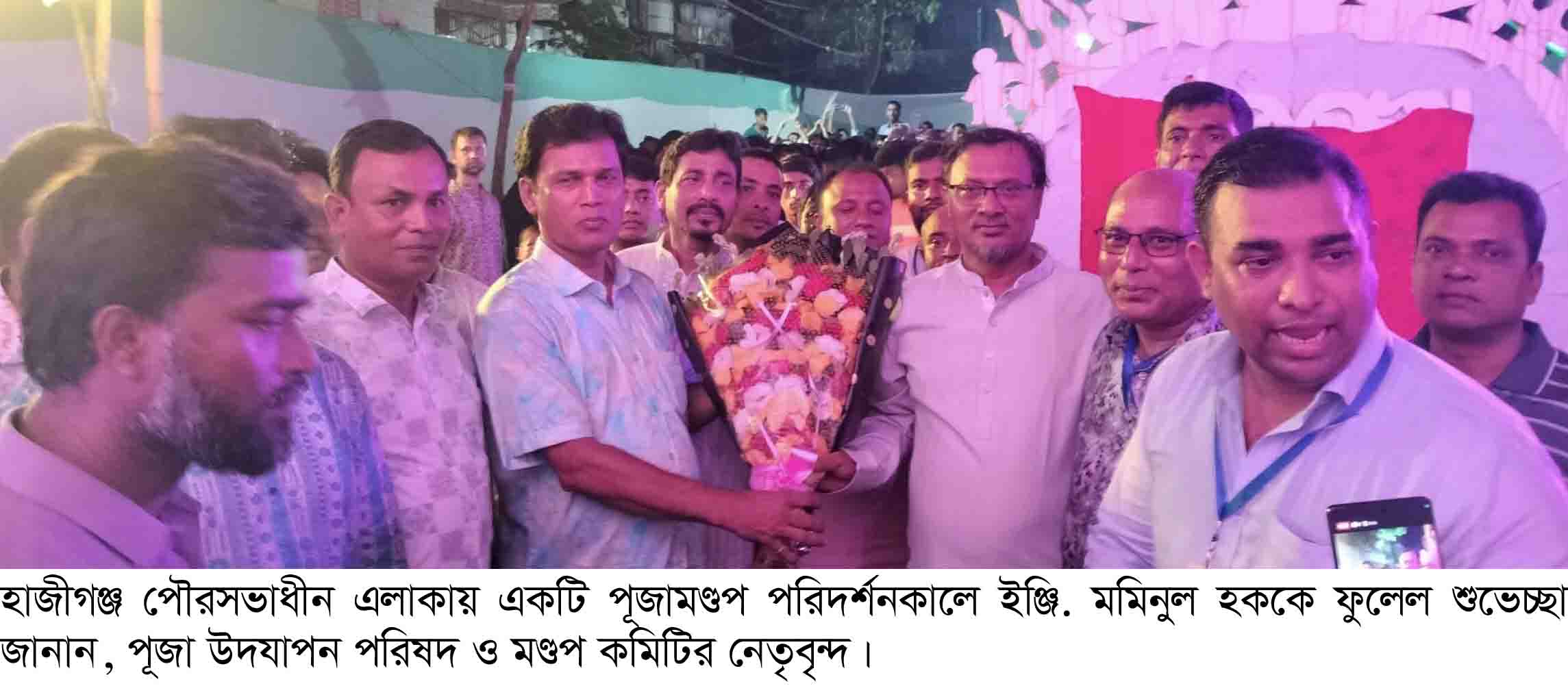 হাজীগঞ্জের সকল পূজামণ্ডপ পদিরর্শন করেছেন বিএনপির কেন্দ্রিয় নির্বাহী কমিটির সদস্য, জেলা বিএনপির সাবেক সভাপতি ও চাঁদপুর-৫ (হাজীগঞ্জ-শাহরাস্তি) নির্বাচনী এলাকার বিএনপির প্রধান সমন্বয়ক ইঞ্জি. মমিনুল হক।