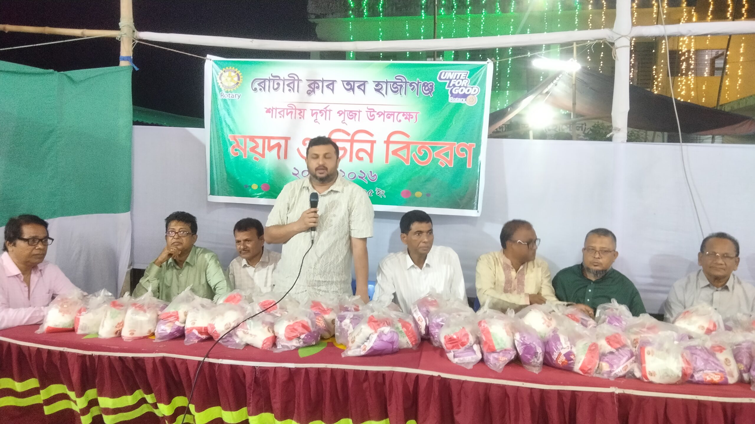 দুর্গাপূজা উপলক্ষে রোটারী ক্লাব অফ হাজীগঞ্জের উদ্যোগে ময়দা চিনি বিতরণ