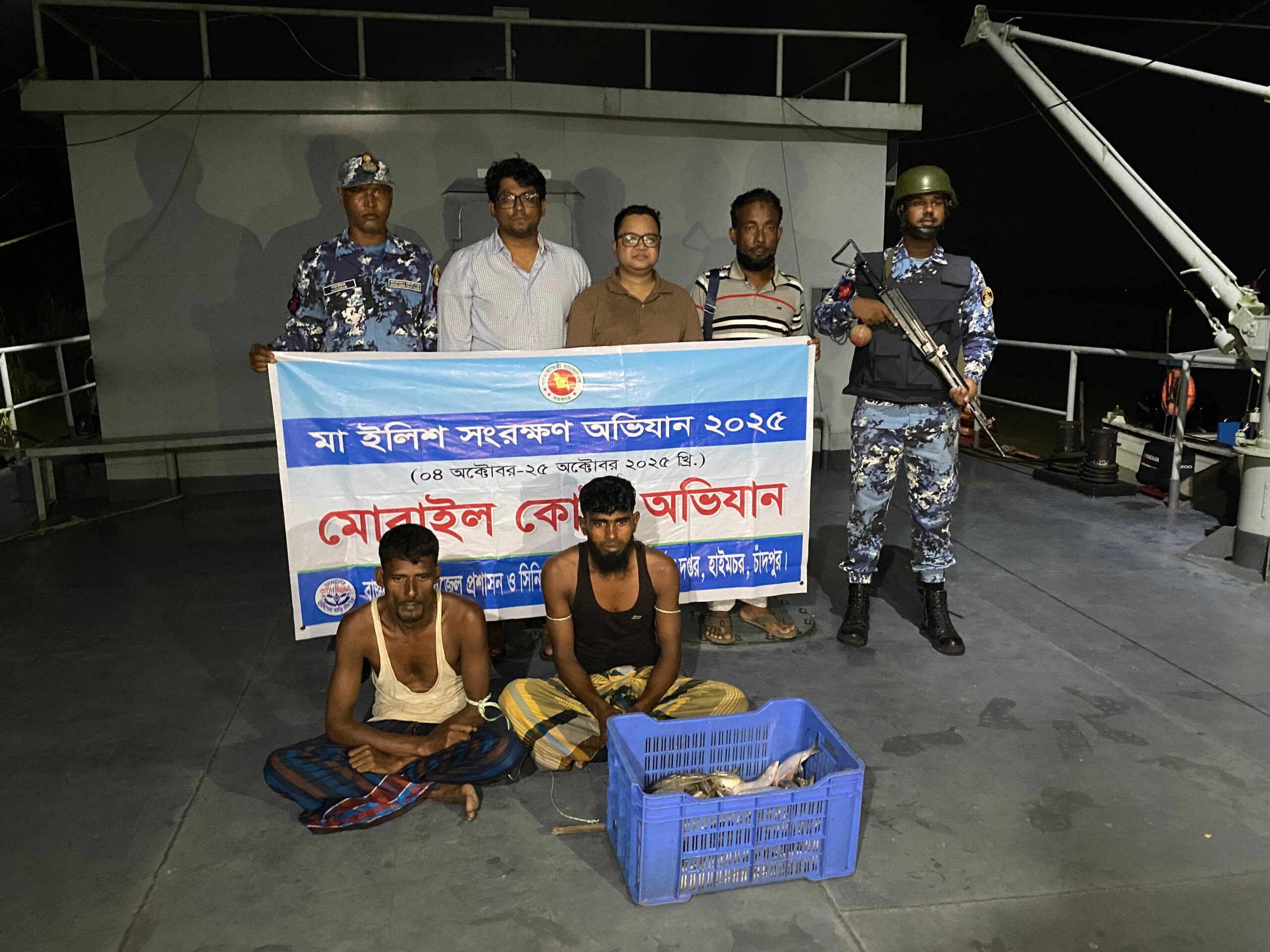 পরবর্তীতে সহকারী কমিশনার (ভূমি) ভ্রাম্যমাণ আদালত পরিচালনা করেন এবং আটককৃত ২ জেলেকে ২০ দিন করে কারাদণ্ড প্রদান করেন।