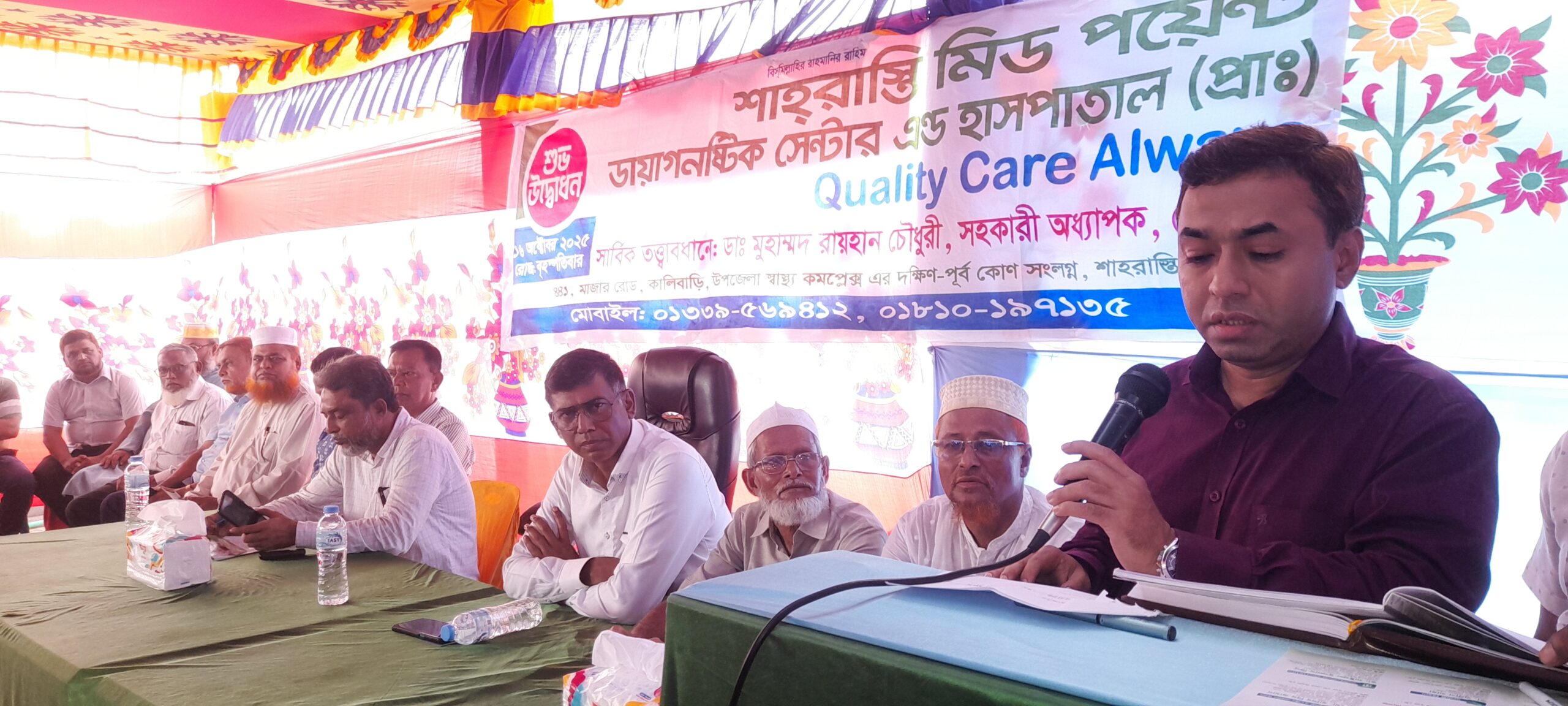 শাহরাস্তি মিড পয়েন্ট ডায়াগনস্টিক সেন্টার অ্যান্ড হাসপাতালের শুভ উদ্বোধন অনুষ্ঠিত হয়েছে। বৃহস্পতিবার (১৬ অক্টোবর ২০২৫) সকালে শাহরাস্তি উপজেলার কালিবাড়ি মাজার রোডে অবস্থিত হাসপাতাল প্রাঙ্গণে উদ্বোধনী অনুষ্ঠানের আয়োজন করা হয়।অনুষ্ঠানে সার্বিক তত্ত্বাবধানে ছিলেন কুমিল্লা মেডিকেল কলেজ হাসপাতালের সহকারী অধ্যাপক (মেডিসিন) ডা. মুহাম্মদ রায়হান চৌধুরী। তিনি বলেন, সামাজিক দায়বদ্ধতা ও মান সম্মান মানসম্মত চিকিৎসা ব্যবস্থা এইজনপদে পৌঁছে দিতে এই আয়োজন। তিনি বলেন সকল আধুনিক প্রযুক্তি এখানে ব্যবহার করার চেষ্টা চলছে। আপনাদের সহযোগিতা পেলে আবার এগিয়ে যাব অনেক দূর।