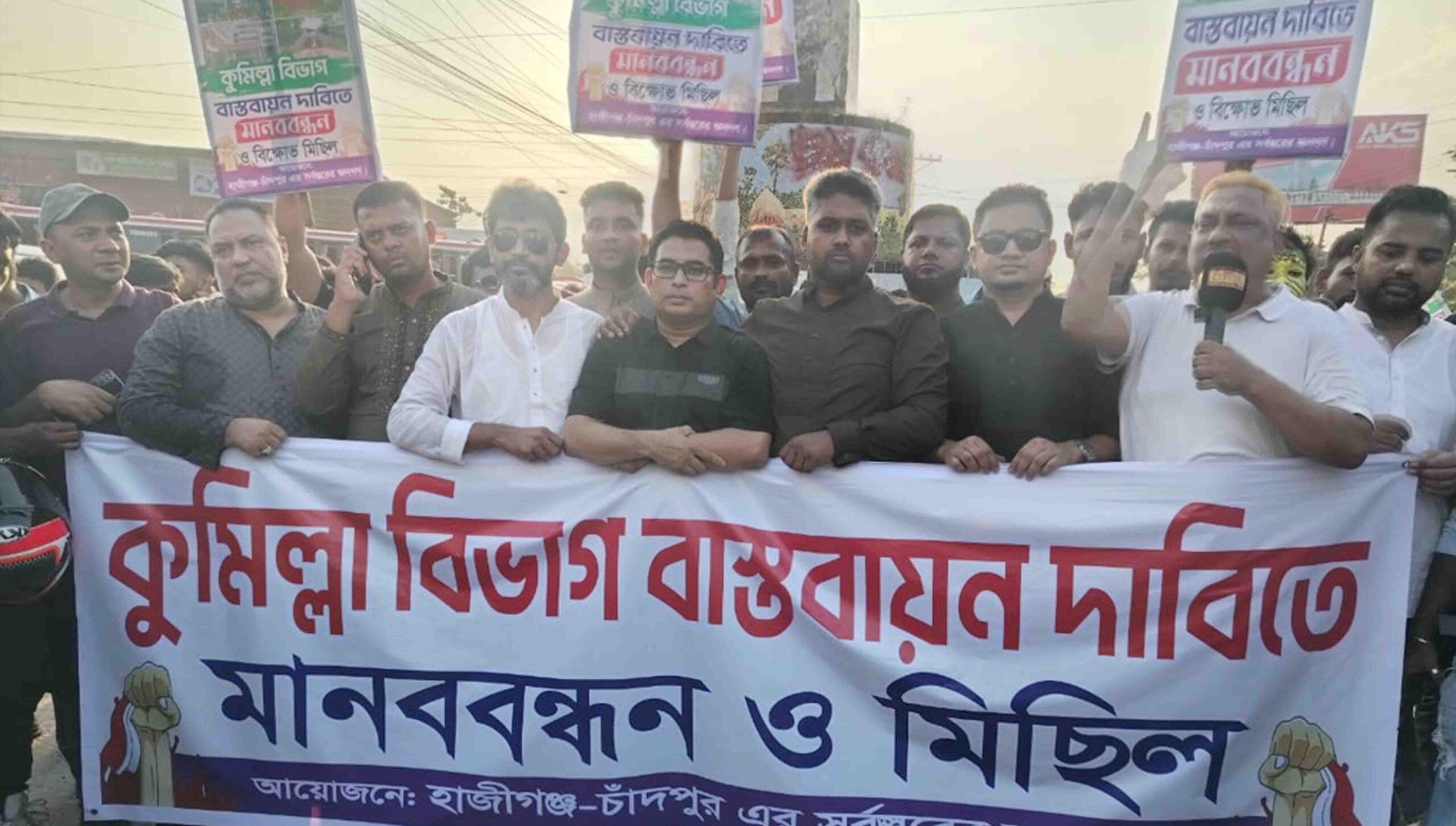 হাজীগঞ্জে কুমিল্লা বিভাগ বাস্তবায়নের দাবিতে গণমিছিল ও মানববন্ধন