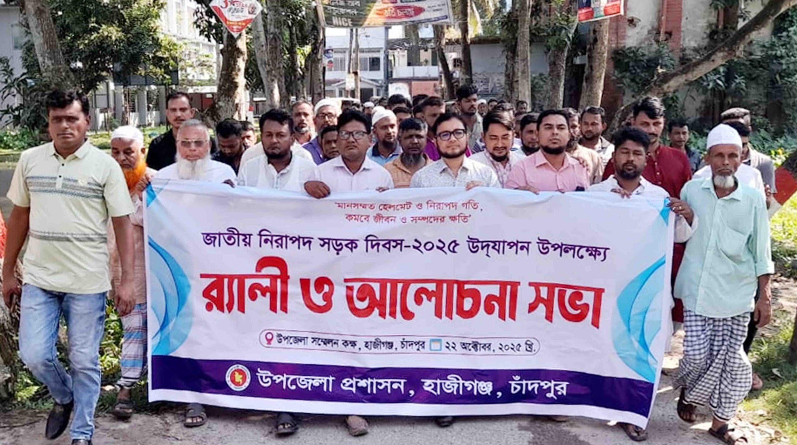 ‘মানসম্মত হেলমেট ও নিরাপদ গতি, কমবে জীবন ও সম্পদের ক্ষতি’ এই শ্লোগানে হাজীগঞ্জে জাতীয় নিরাপদ সড়ক দিবস পালিত হয়েছে। দিবসটি উপলক্ষে উপজেলা প্রশাসনের আয়োজনে বুধবার (২২ অক্টোবর) সকালে র্যালী ও আলোচনা সভা অনুষ্ঠিত হয়। এদিন র্যালীটি উপজেলা চত্ত্বর থেকে বের হয়ে কুমিল্লা-চাঁদপুর আঞ্চলিক মহাসড়কের আলীগঞ্জ বাজারের প্রধান সড়ক প্রদক্ষিণ করে আলোচনা সভাস্থলে এসে শেষ হয়।