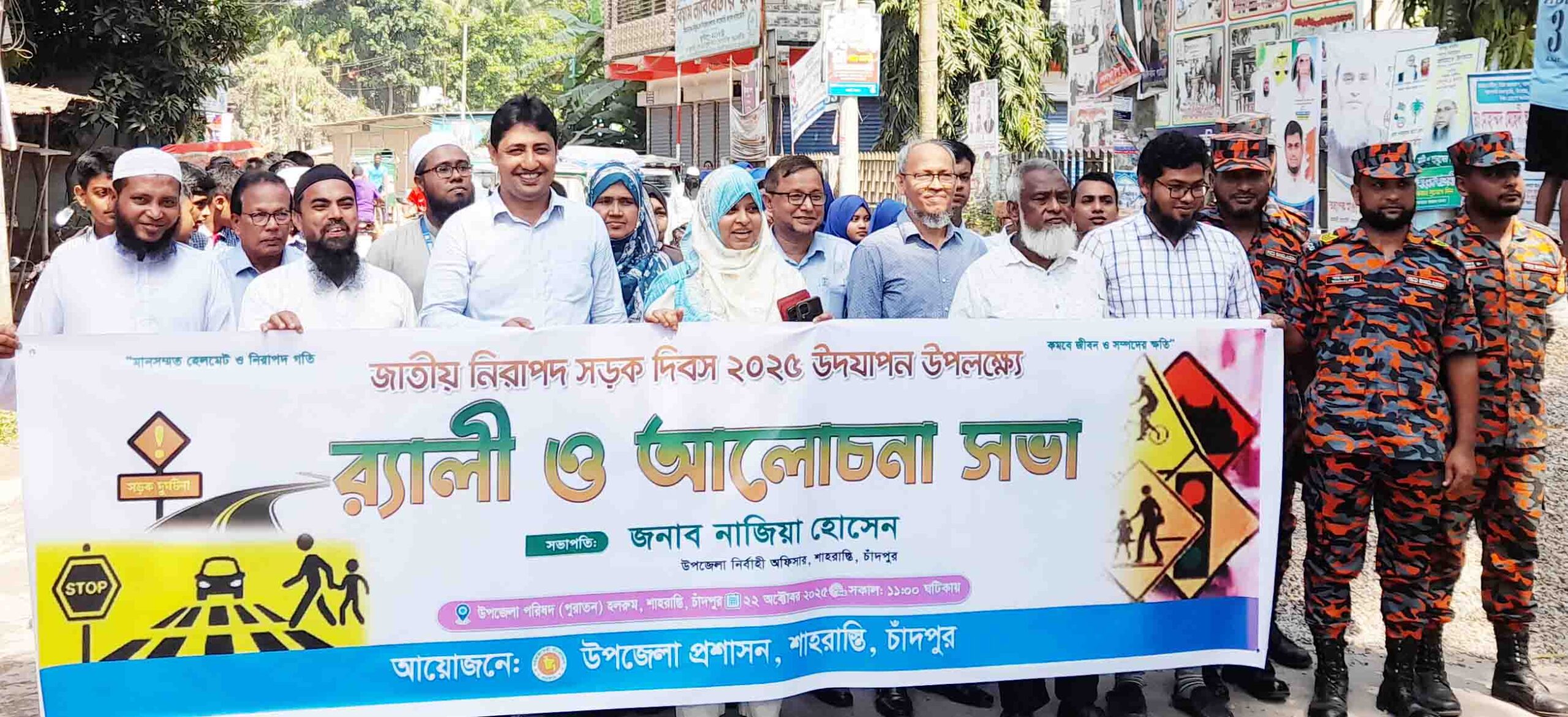 শাহরাস্তিতে “জাতীয় নিরাপদ সড়ক দিবস ২০২৫ ” উদযাপন উপলক্ষ্যে র‍্যালি ও আলোচনা সভা অনুষ্ঠিত হয়েছে।বুধবার ২২ অক্টোবর উপজেলা প্রশাসনের উদ্যোগে পরিষদ মিলনাআয়তনে এই কর্মসূচি পালন করা হয়। র‍্যালিটি শহরের গুরুত্বপূর্ণ সড়ক প্রদক্ষিণ করে। র‍্যালিতে সরকারি কর্মকর্তা, কর্মচারী, ফায়ার সার্ভিস, জনপ্রতিনিধি, শিক্ষক, শিক্ষার্থী ও স্থানীয় গণ্যমান্য ব্যক্তিবর্গ অংশগ্রহণ করেন।